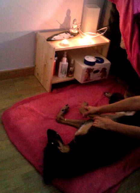 También ha nuestra labor, para ayudar se ha unido nuestra compañera que es masajista para dar masajes relajantes a su perrito, con ambiente y música relajante.